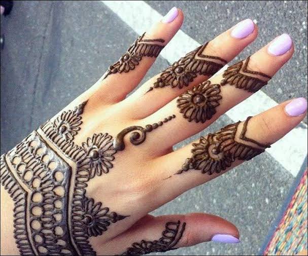 A huge section of the hand is left unfilled in this pattern! The Arabic henna design on your fingers will beautifully complement your manicured nails, leaving everyone in wonder. An idea worth remembering!