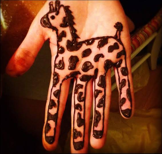 This is a one-of-a-kind Mehndi design for kids. This giraffe mehndi design would entice a child to try mehndi for the first time. A Mehndi designer would always present something new for their Mehndi design to motivate the kids.