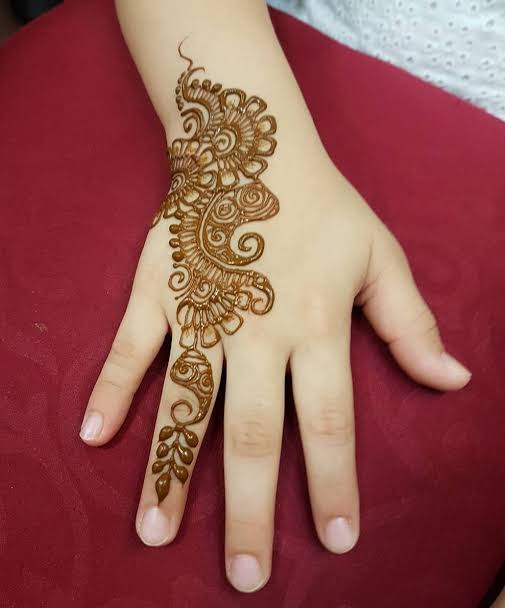 Rose mehndi designs are always intriguing. With the monarchy of rose petals drawn on the skin in brilliant colors, this easy mehndi design for kids gets guaranteed to enchant them. So, in the next occasion, you should surely try these mehndi designs on the hands of kids.