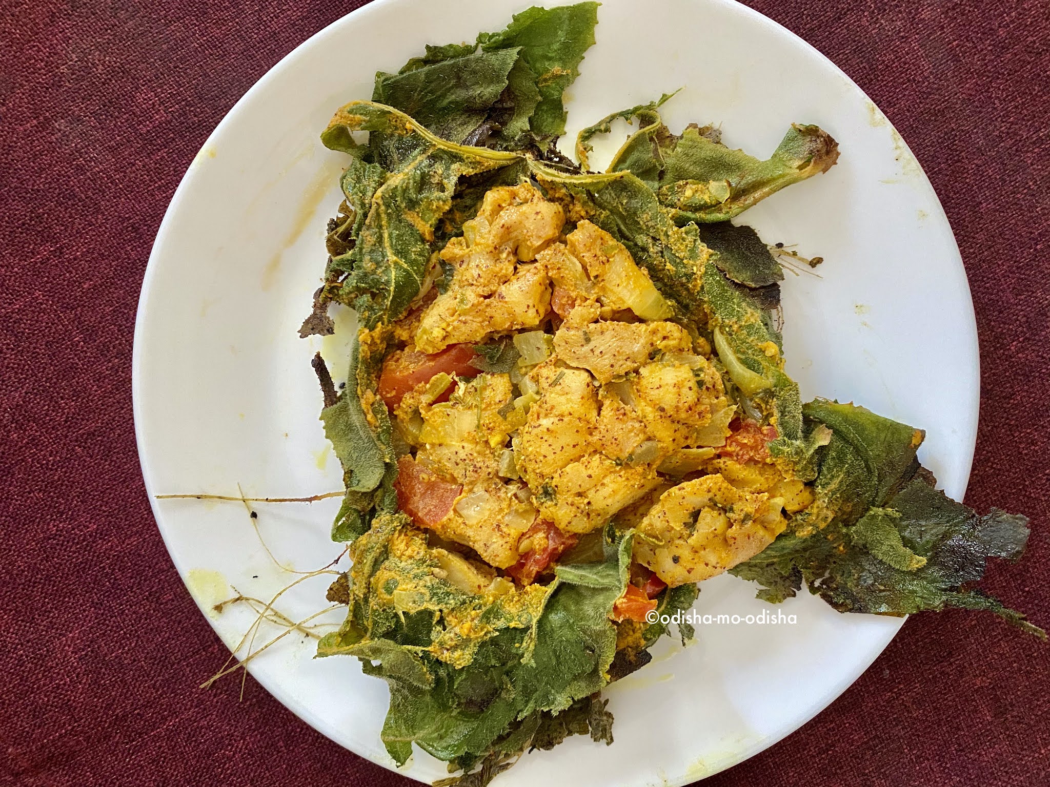 Saru Patra Poda Chicken is a unique and delicious recipe that is very famous in Odisha. Interestingly, it’s an oil-free healthy recipe that goes well with hot rice. Even it has less oil and spice in it, the dish has strong pungent flavors to it.