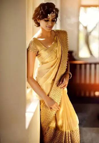 Turning away from the camera while keeping a stoic expression gives an unnatural appearance. Thus, to show up more camera-ready in saree pictures at home, move your face away from the camera somewhat. I adhere to this standard and always remember to move my face marginally when confronting the camera while wearing a saree.